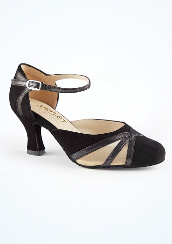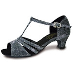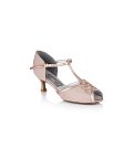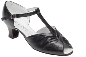 The Emerald is a sophisticated and stylish ladies social shoe, with a shimmering ruched vamp, a contrasting suedette T-bar and back piece and a closed toe. The lower heel and ankle strap featured on this shoe adds comfort and security while the shimmery vamp will keep you looking glamorous on the dance floor.