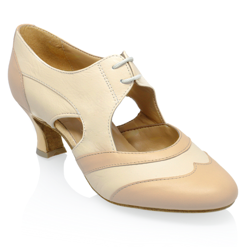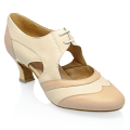 A stunning 2 inch Cuban heeled Practice shoe in cream and beige from Ray Rose ,such a versatile shoe.
