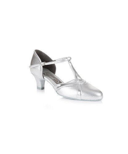 Leather closed toe with contrasting t-bar available in Silver