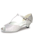 Sparkly silver ballroom, social or party shoes with T-bar strap.