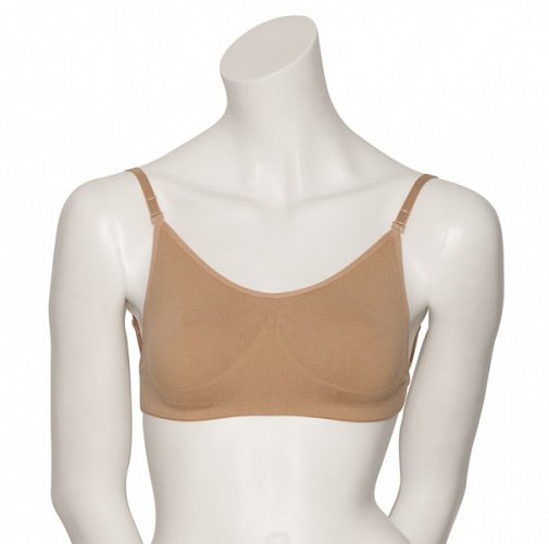 Children's nude camisole bra with clear back strap and clear and nude shoulder straps