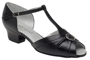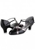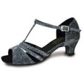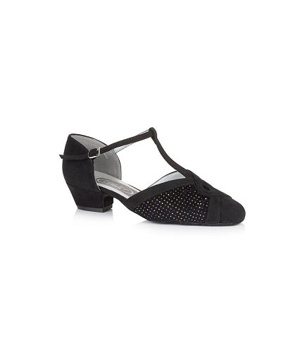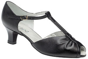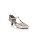 The Emerald is a sophisticated and stylish ladies social shoe, with a shimmering ruched vamp, a contrasting suedette T-bar and back piece and a closed toe. The lower heel and ankle strap featured on this shoe adds comfort and security while the shimmery vamp will keep you looking glamorous on the dance floor.