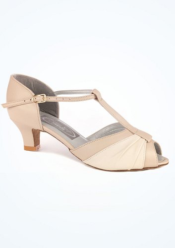 A stunning 2 inch Cuban heeled Practice shoe in cream and beige from Ray Rose ,such a versatile shoe.