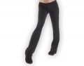 Slouch jazz pants have a roll top waist band and are cut wider than bootleg jazz pants.